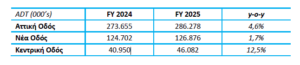 ΓΕΚ ΤΕΡΝΑ Αυτοκινητόδρομοι - Στοιχεία κίνησης 2025